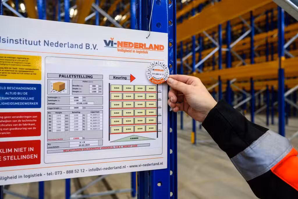 U moet opslagsystemen veilig gebruiken, onderhouden en laten inspecteren. NEN-EN 15635 is de praktijknorm voor gebruik, keuring en onderhoud van stellingen. Deze vraagt onder meer om duidelijke belastingborden, correcte verankering, periodieke deskundigeninspecties en een procedure voor schadebeoordeling en herstel. Het Arbobesluit verplicht u bovendien tot een veilige werkplek met heldere markering, vrije noodroutes en passende beschermingsmiddelen. VI Nederland helpt u voldoen aan deze eisen met keuring, onderhoud en training. Lees meer over de verplichtingen rondom het keuren van magazijnstellingen.