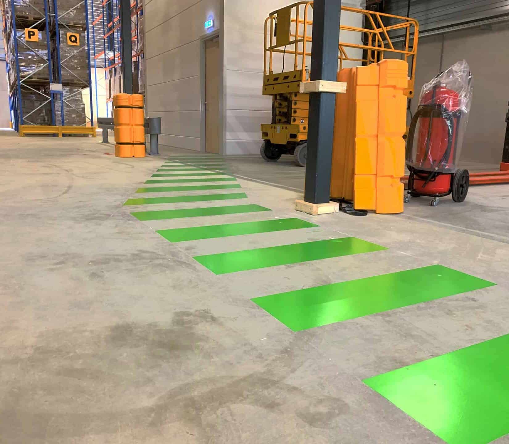 Zichtbaarheid en gedrag bepalen het succes. Visualiseer routes en regels op plattegronden bij ingangen, laadpunten en kantines. Gebruik kleurcodering, pijlen, zoneborden en vloerpictogrammen, en update waar markering slijt. Voor duurzame uitvoering en zichtbaarheid kan professionele markering en belijning het verschil maken.